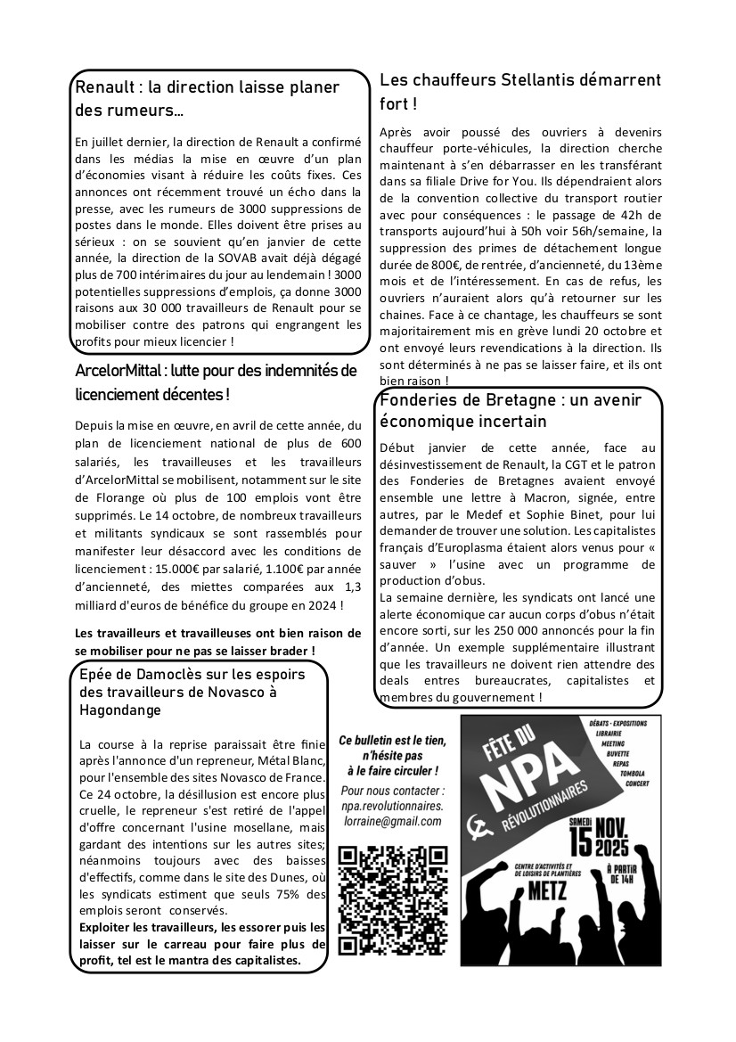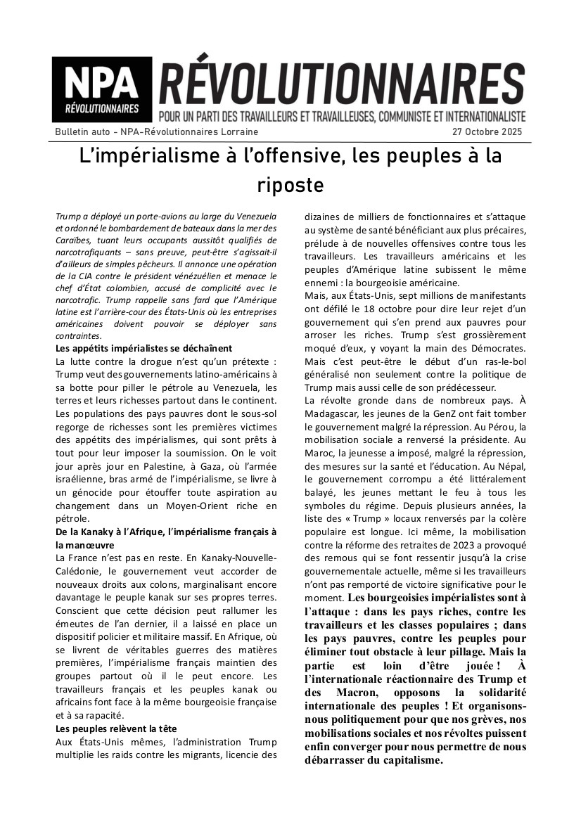 Bulletin automobile du NPA-Révolutionnaires Lorraine