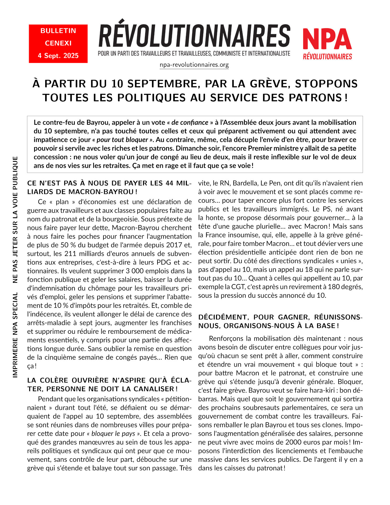 Le journal du NPA Révolutionnaires