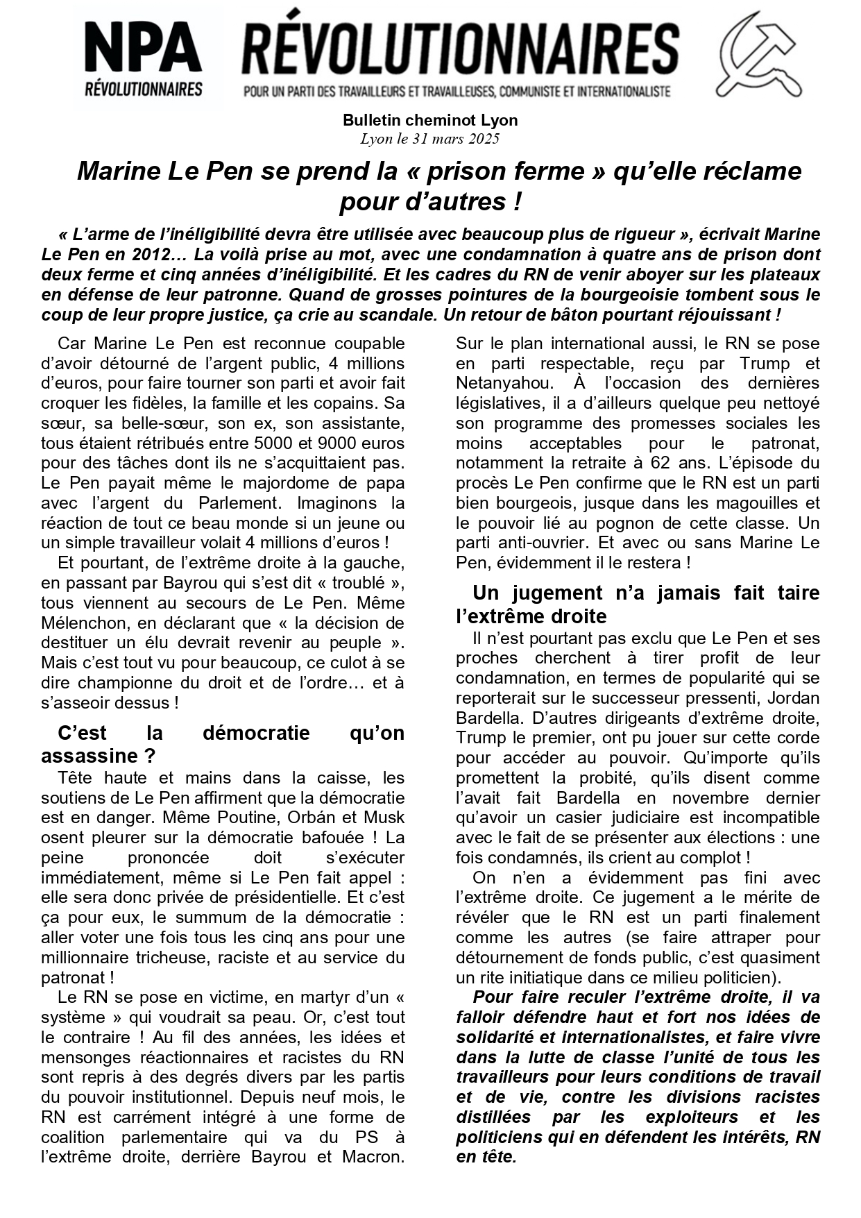Le journal du NPA Révolutionnaires