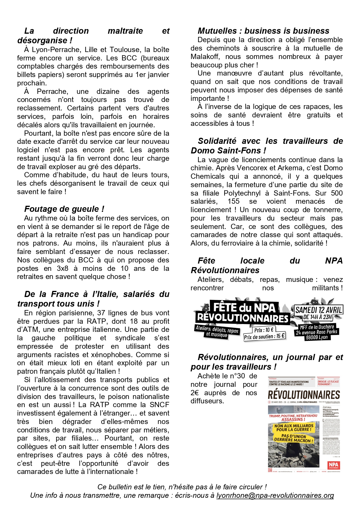 Bulletin cheminot Lyon