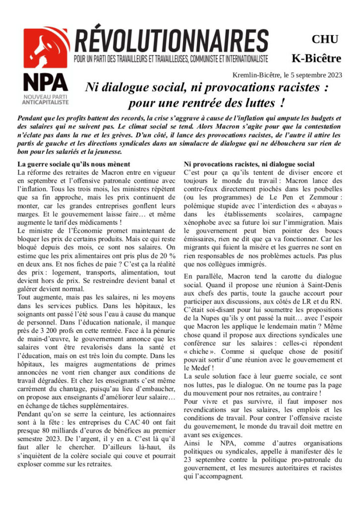 Le journal du NPA Révolutionnaires