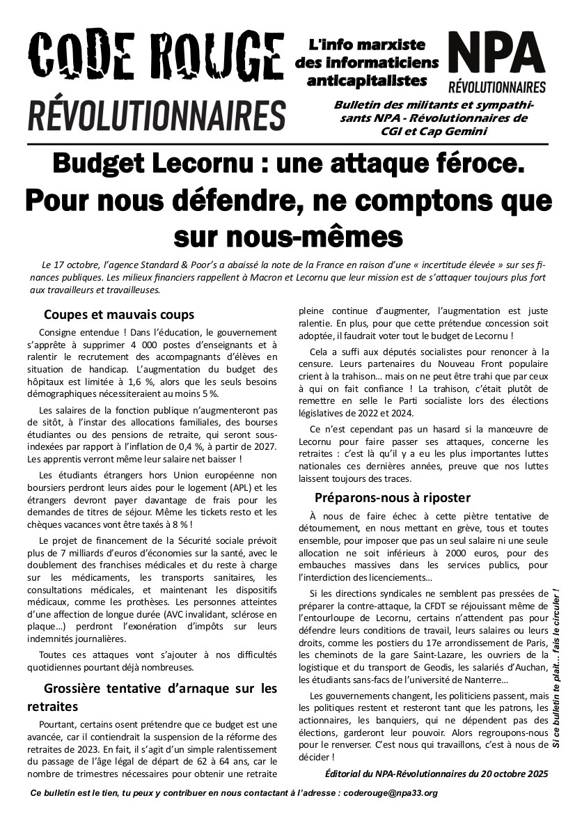 Bulletin Code Rouge (CGI et CapGemini)