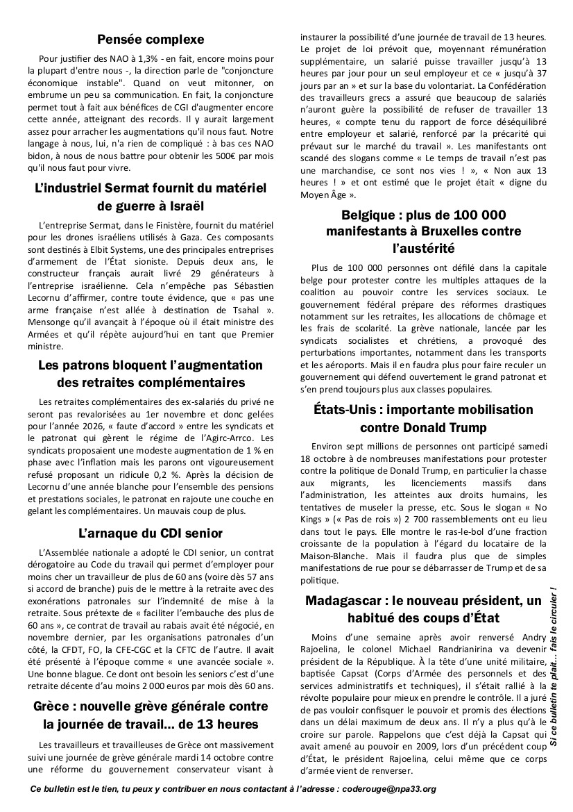 Voir en PDF le bulletin du 20 octobre