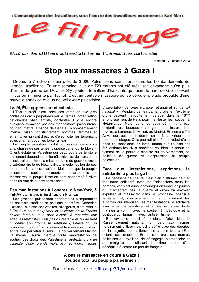 Bulletin Fil Rouge (aéronautique, Toulouse) du 17/10/2023