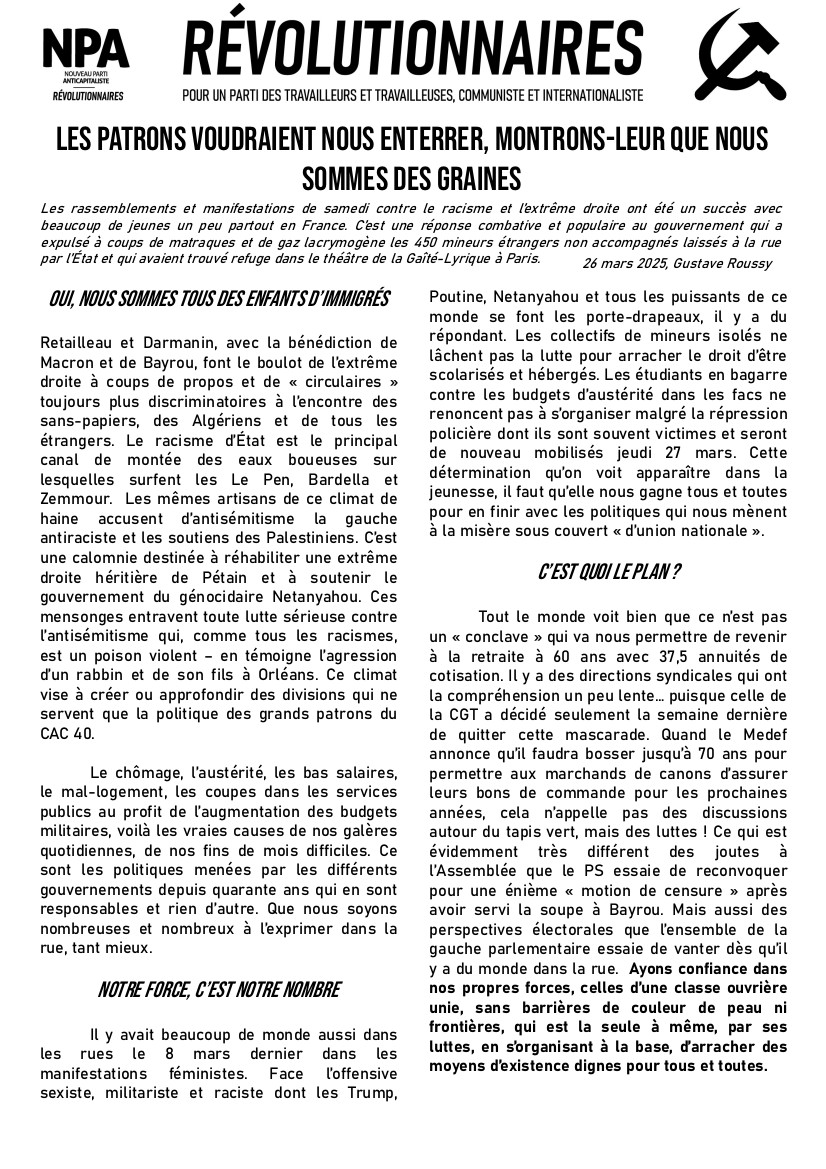 Le journal du NPA Révolutionnaires