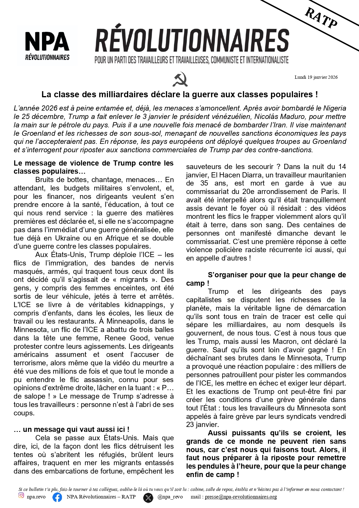 Le journal du NPA Révolutionnaires