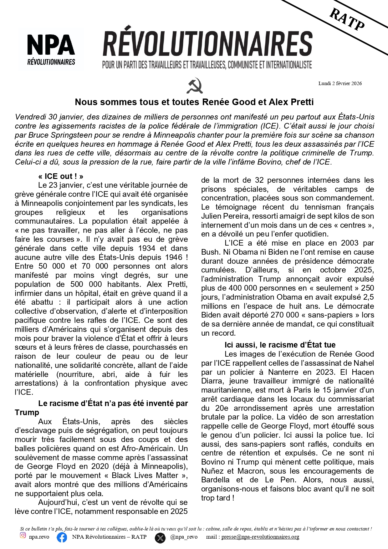 Le journal du NPA Révolutionnaires