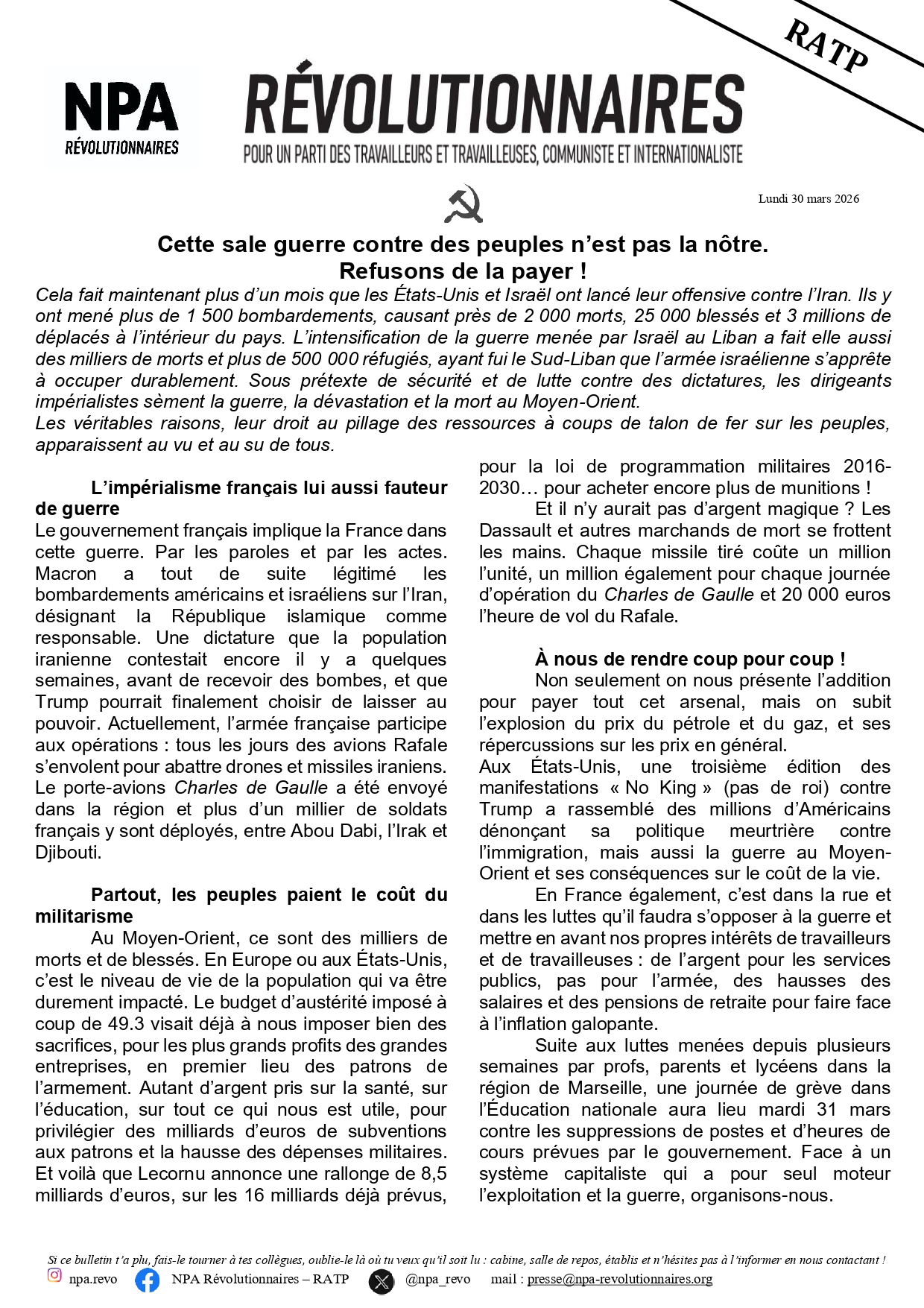 Le journal du NPA Révolutionnaires