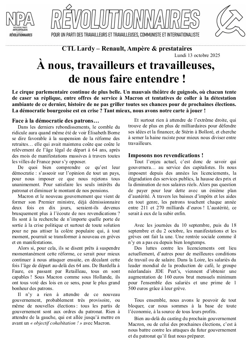 Le journal du NPA Révolutionnaires