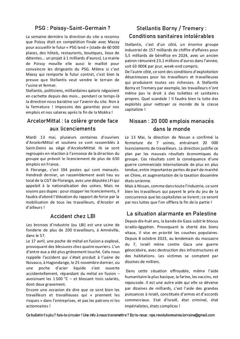 Bulletin secteur automobile du NPA-R Lorraine