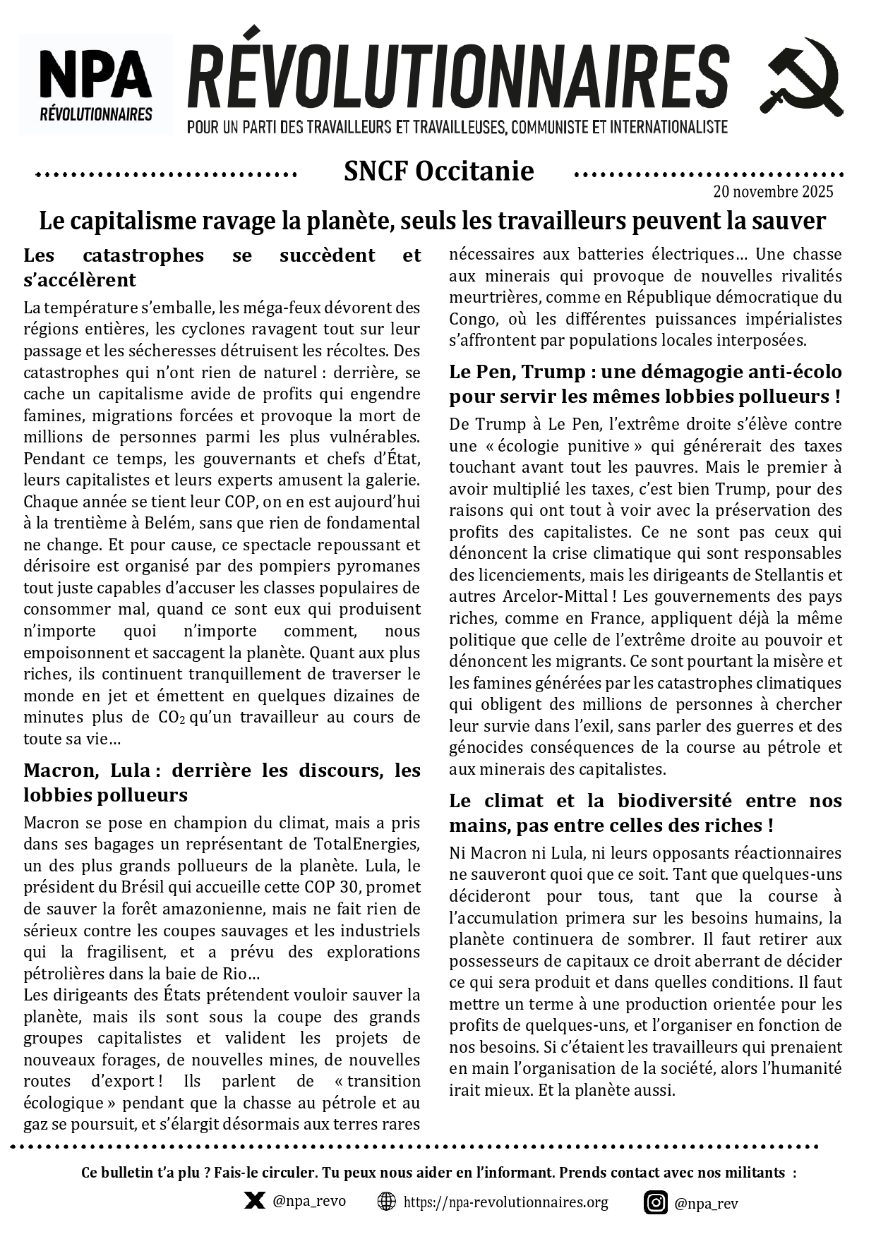 Le journal du NPA Révolutionnaires