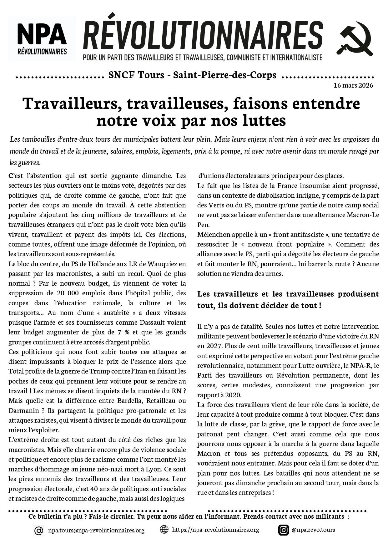 Le journal du NPA Révolutionnaires