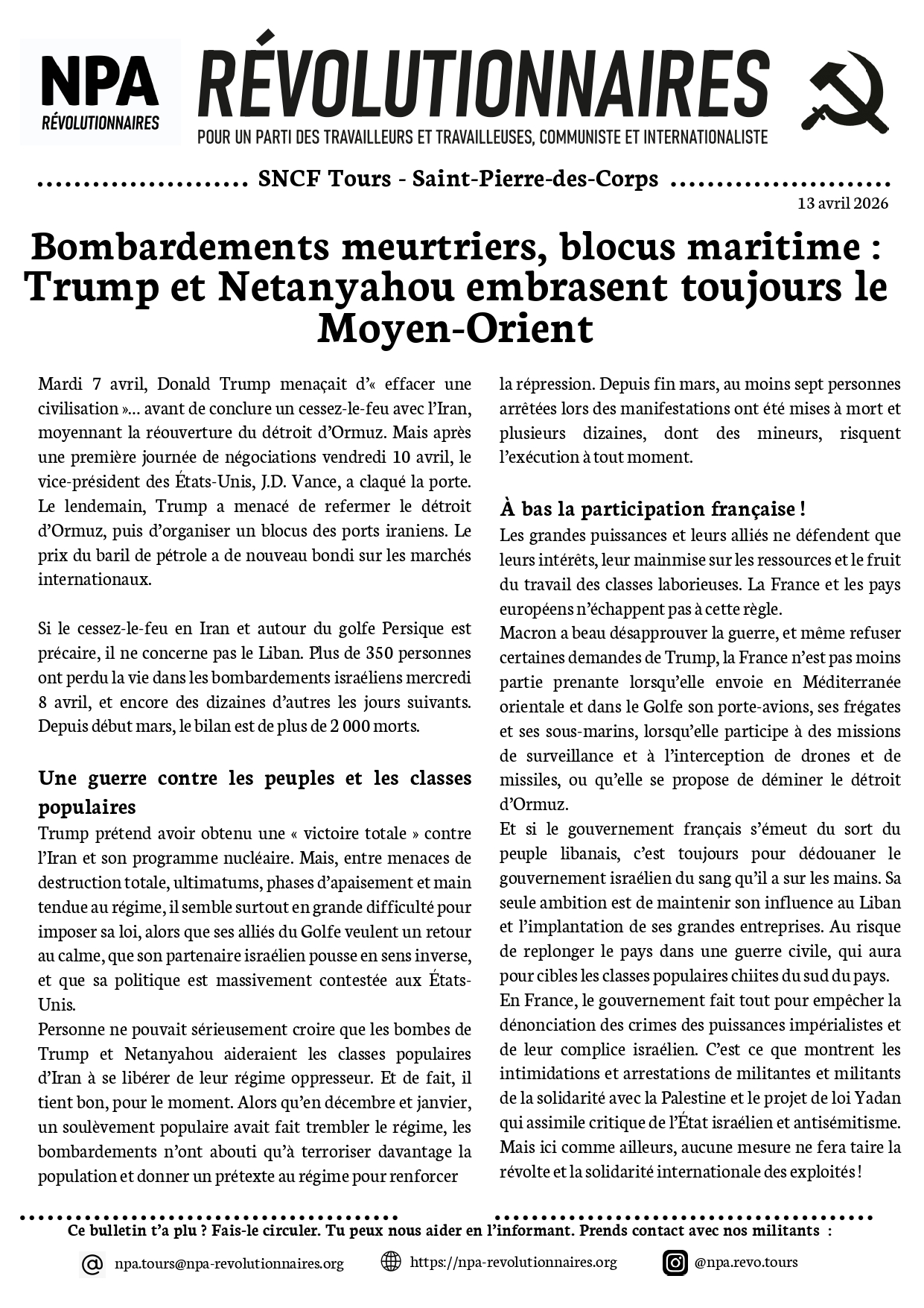 Voir en PDF le bulletin du 13 avril