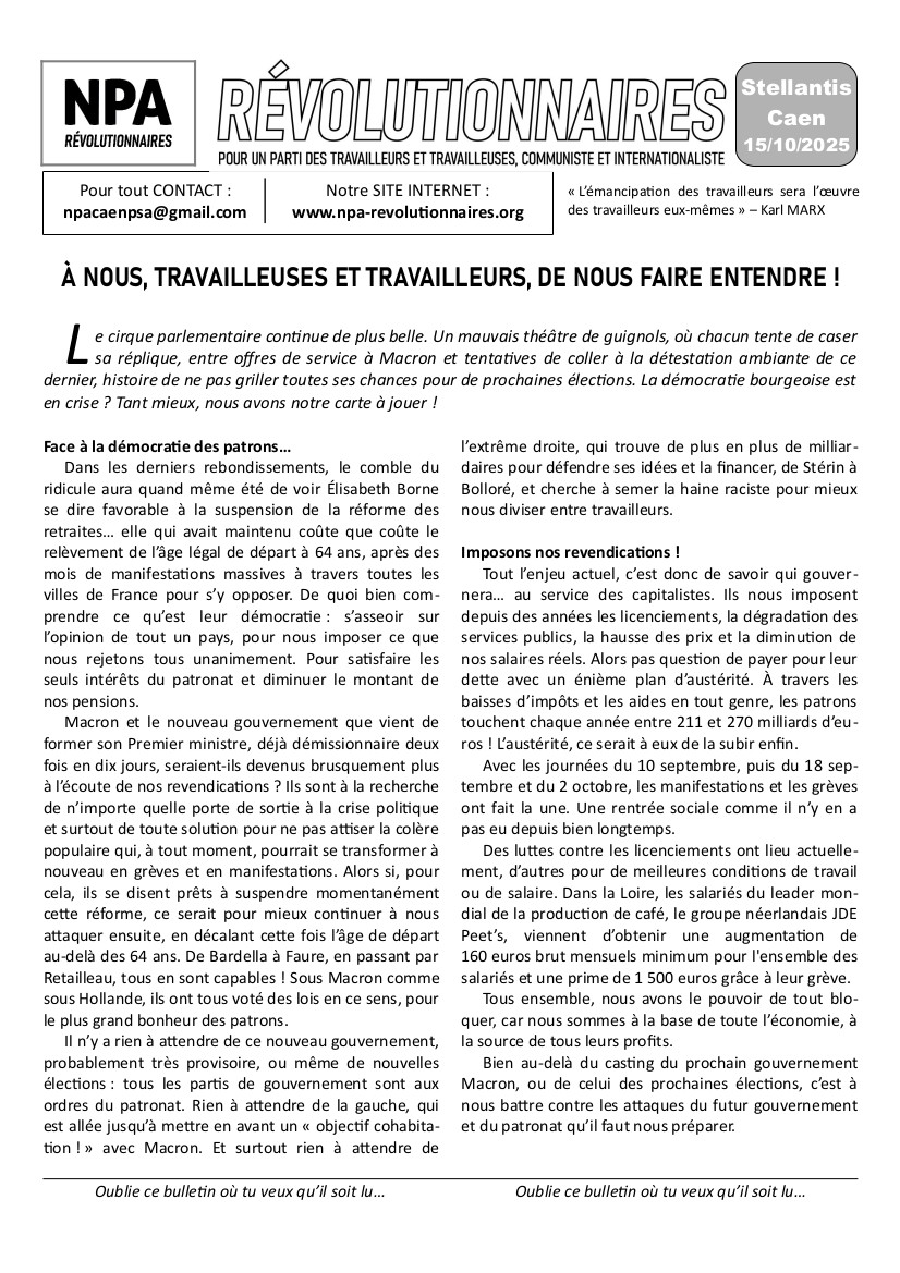 Le journal du NPA Révolutionnaires