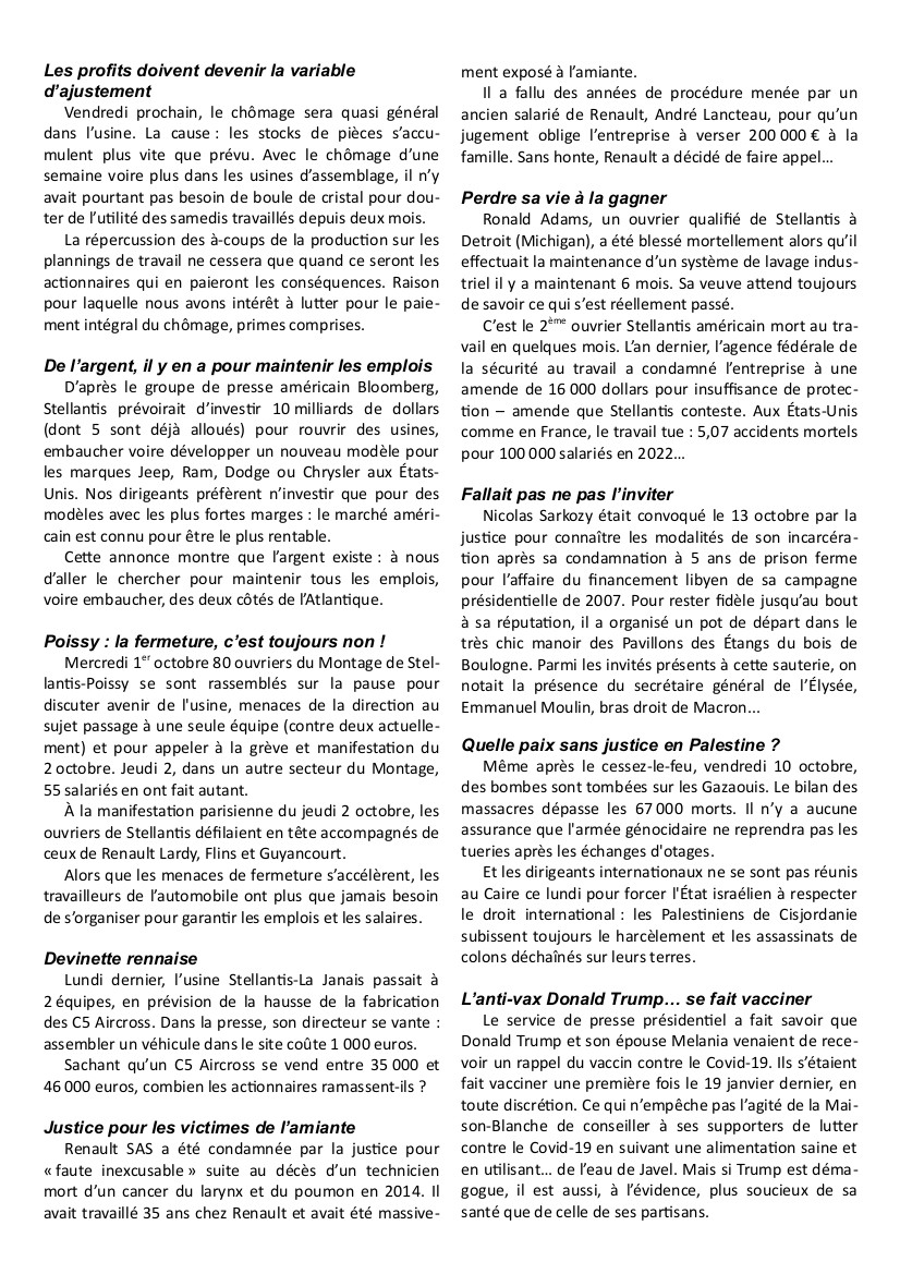 Voir en PDF le bulletin du 15 octobre