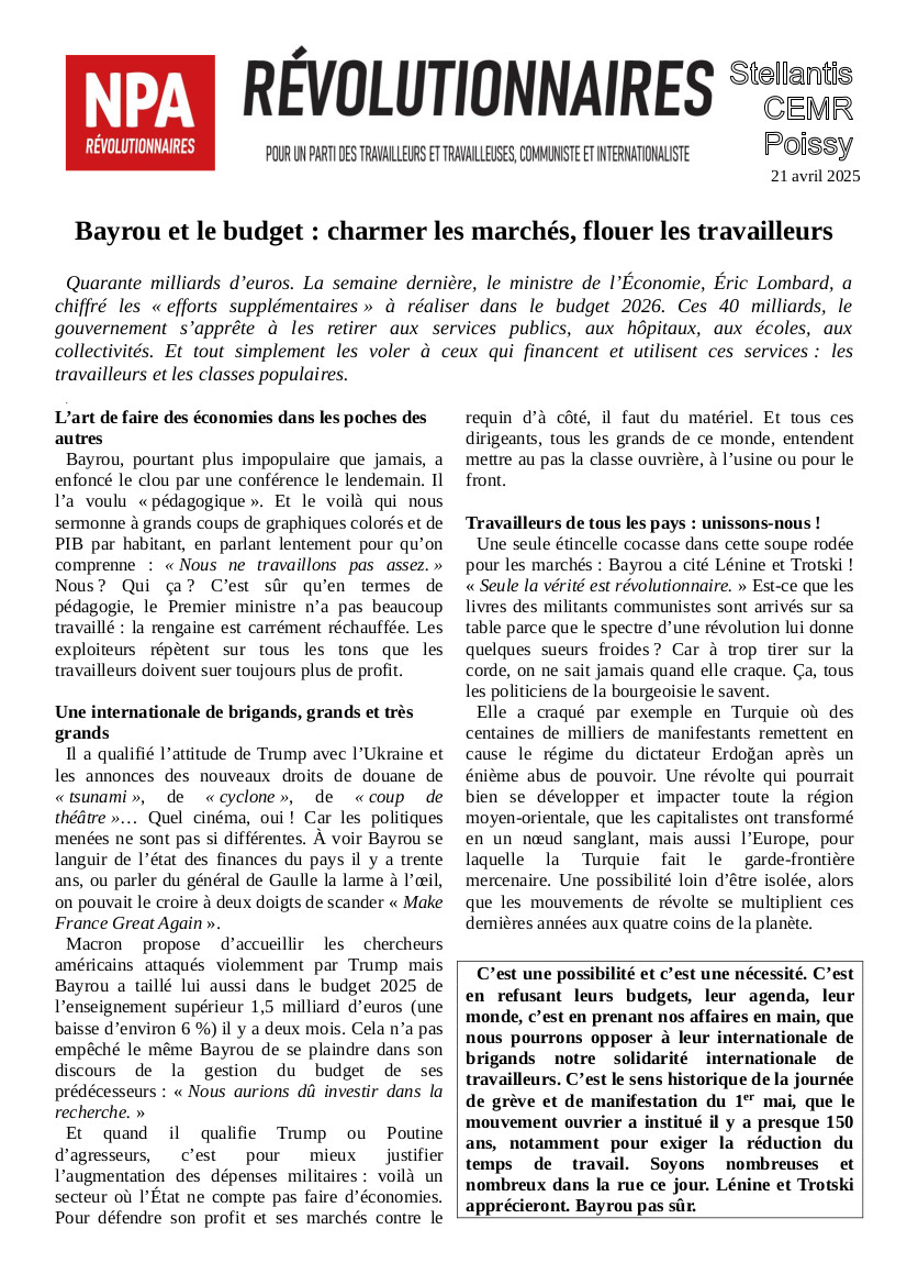 Le journal du NPA Révolutionnaires