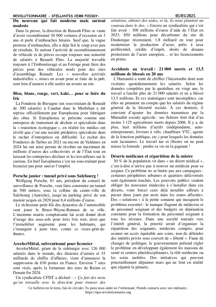 Bulletin Stellantis CEMR Poissy