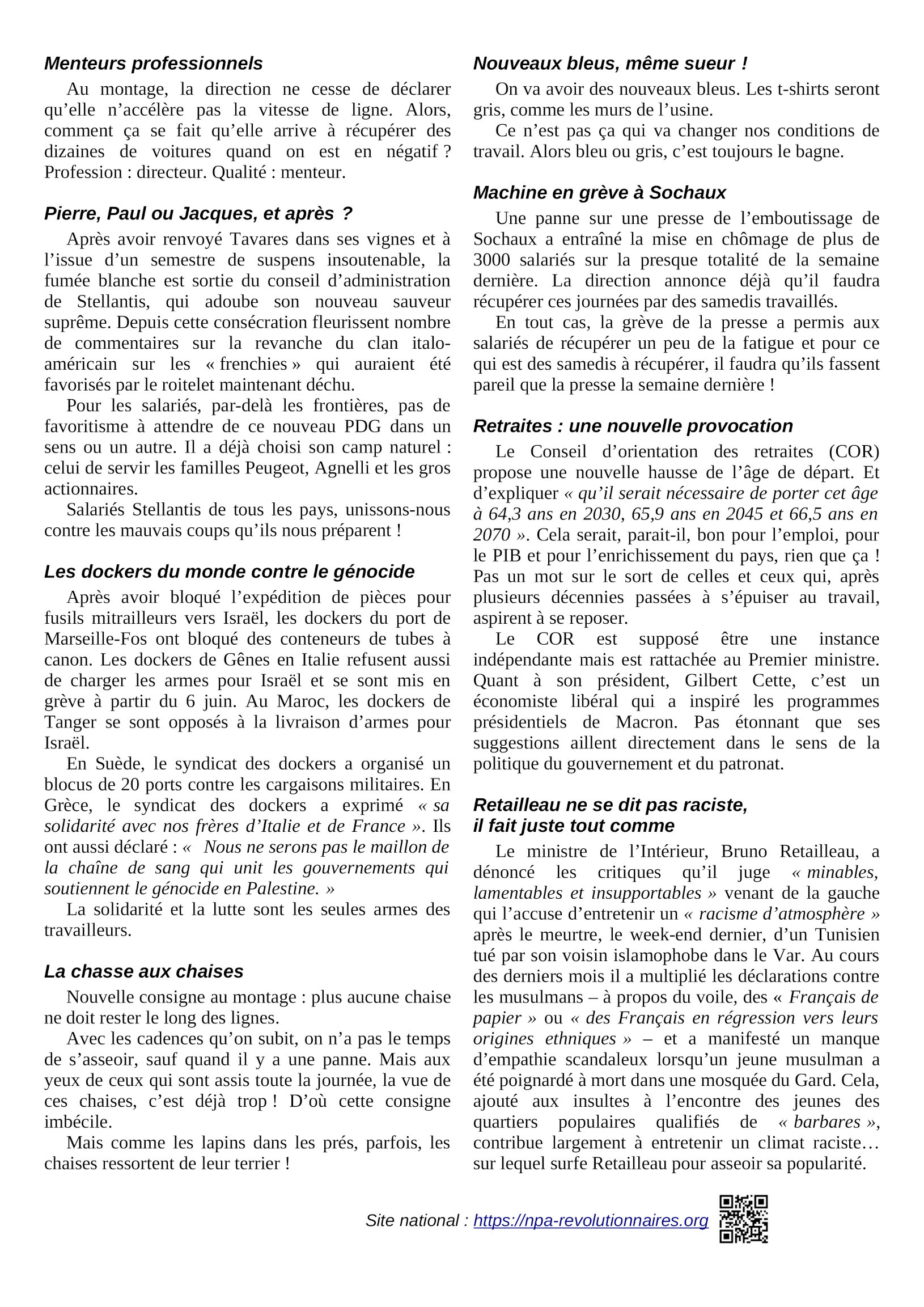 Le journal du NPA Révolutionnaires