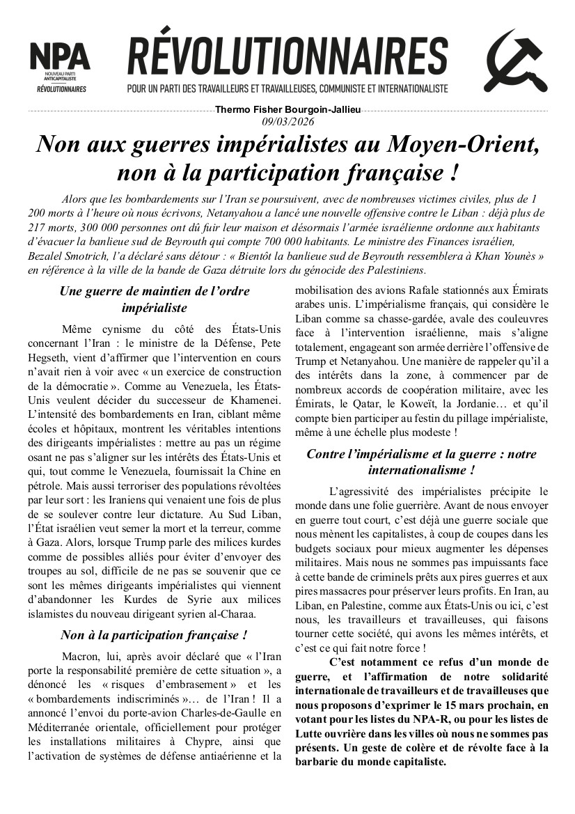 Le journal du NPA Révolutionnaires