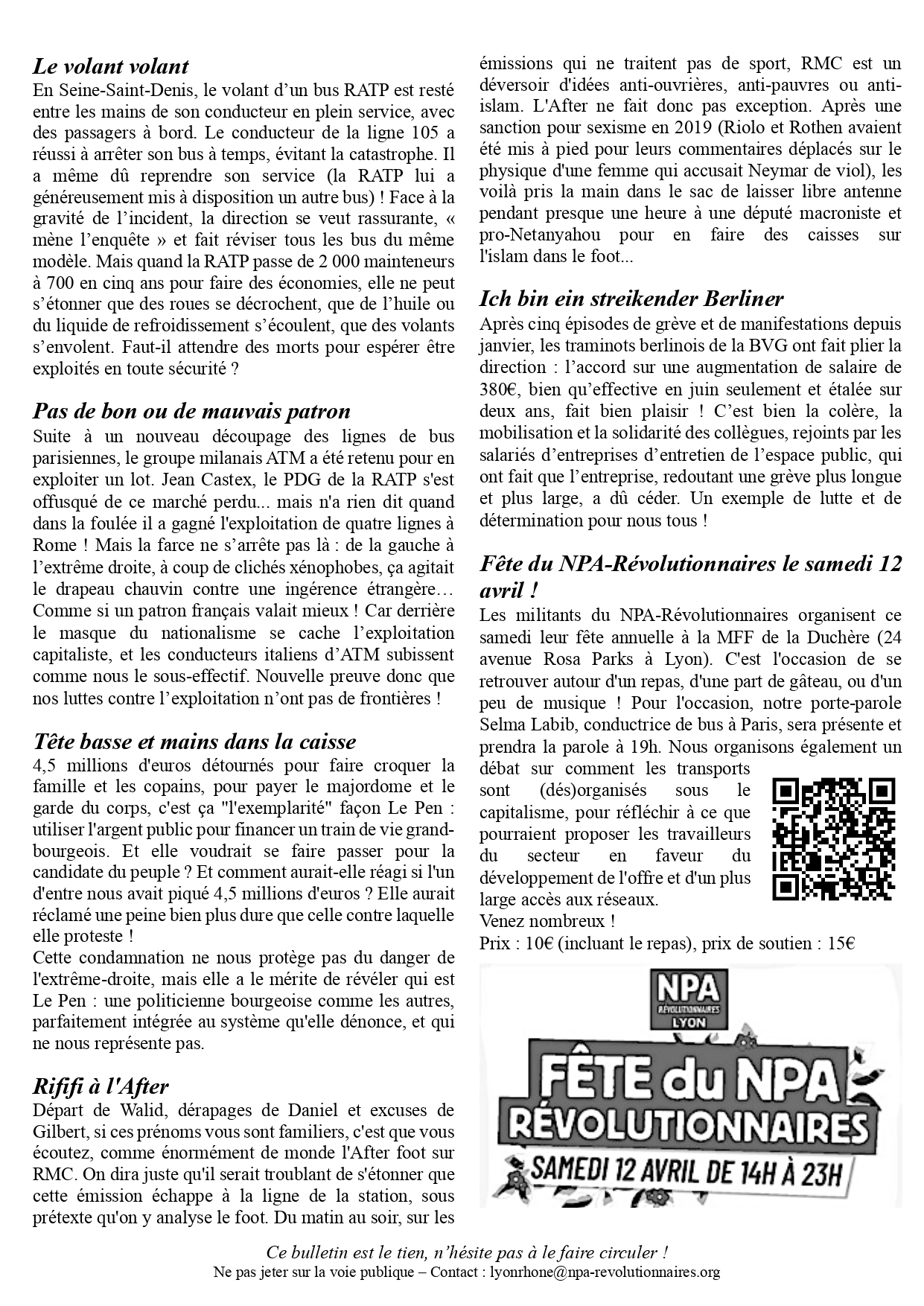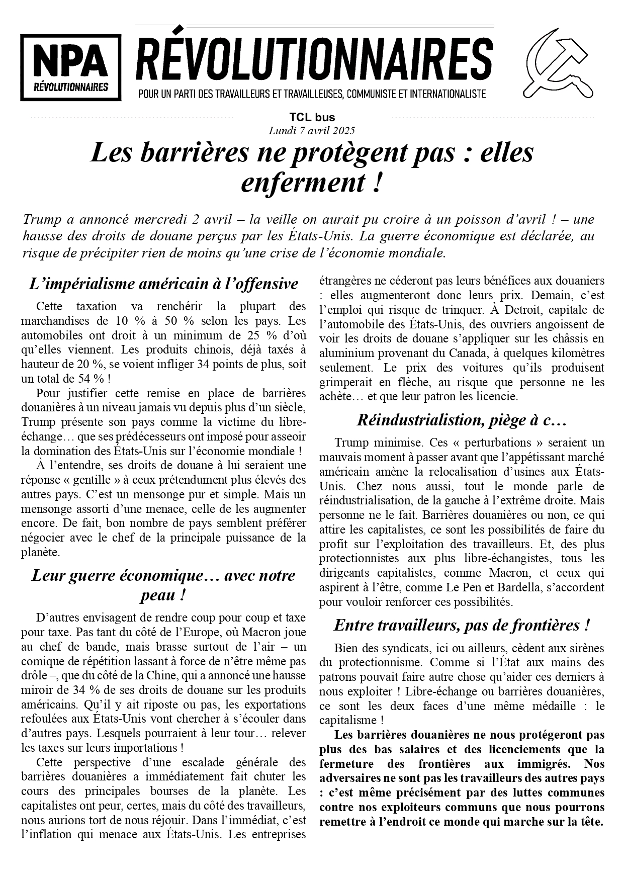 Le journal du NPA Révolutionnaires