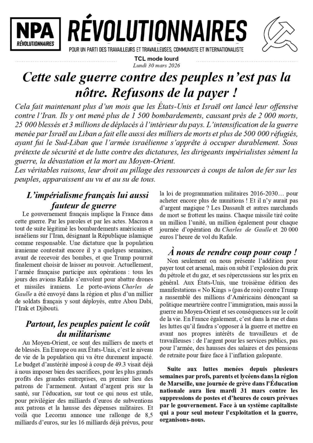 Le journal du NPA Révolutionnaires