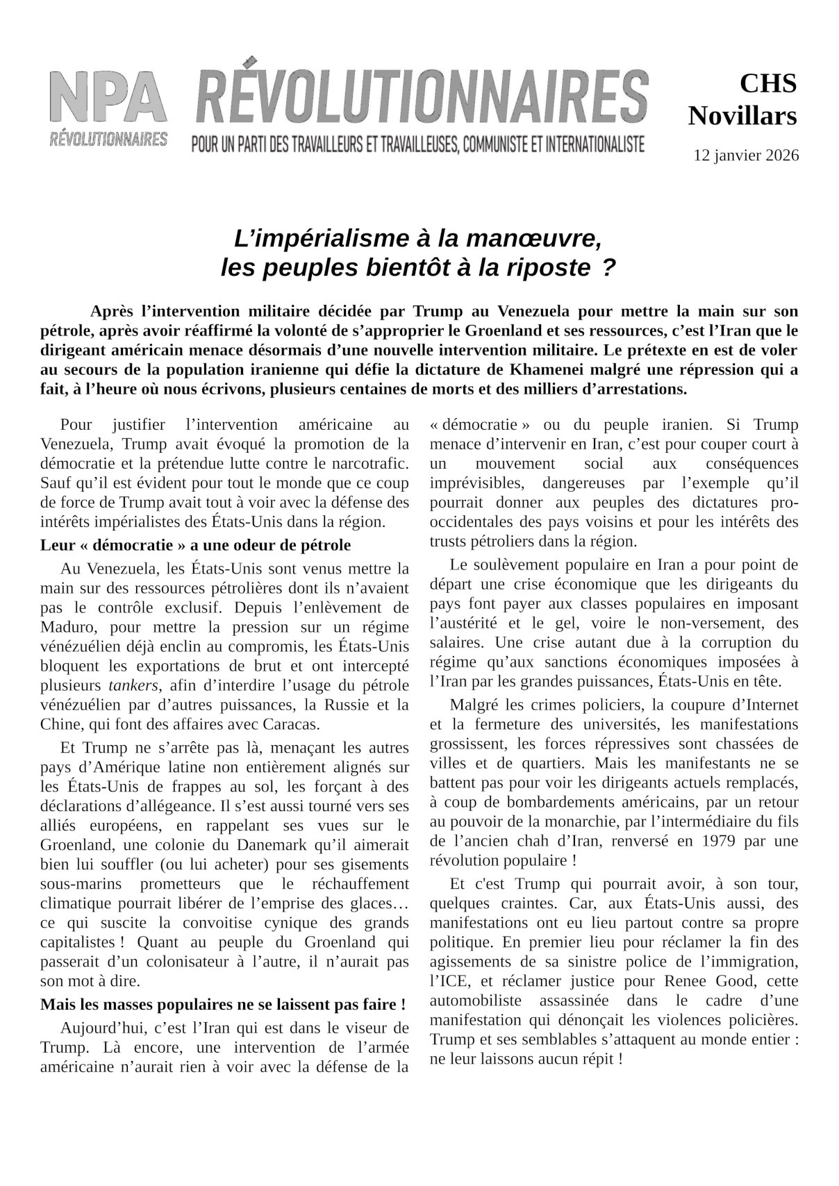 Le journal du NPA Révolutionnaires
