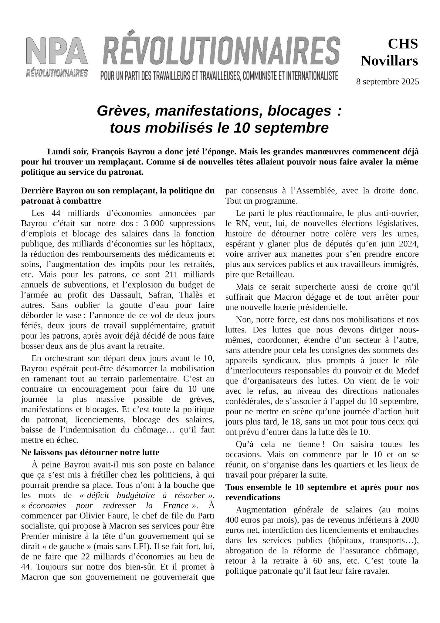 Le journal du NPA Révolutionnaires