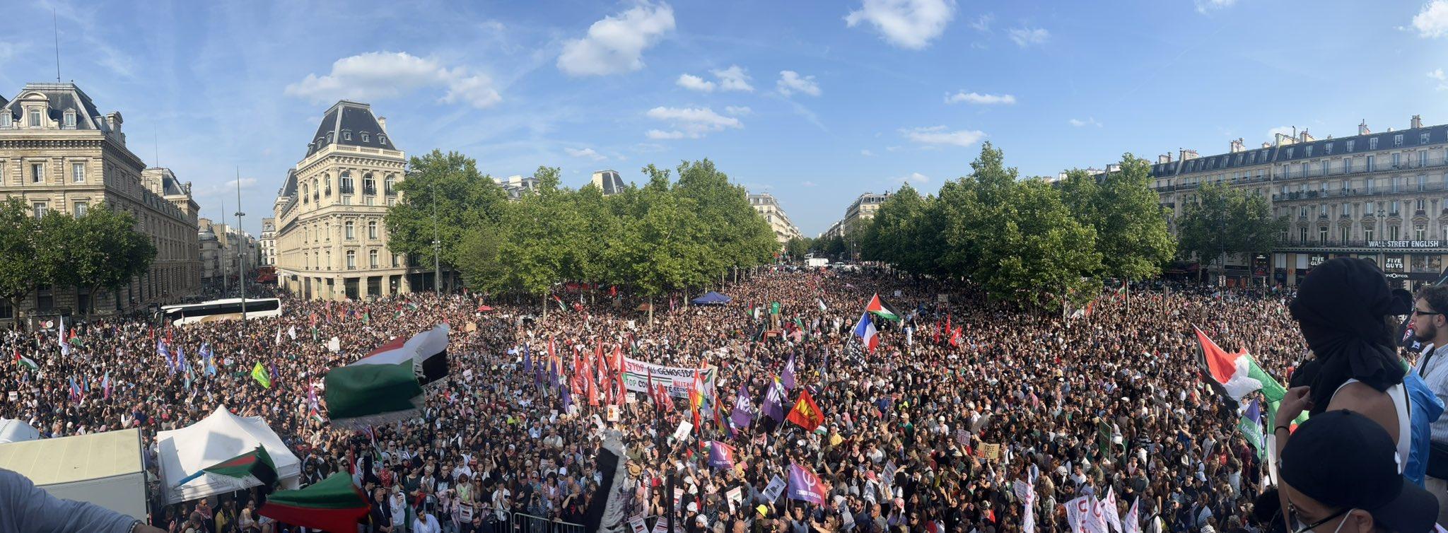 Lundi soir, 9 juin, alors que le bateau humanitaire arrivant au large de Gaza pour dénoncer le blocus était arraisonné et les militants à bord arrêtés en Israël, à Paris ce sont des milliers de manifestants qui ont déferlé place de la République : une dominante de jeunes aux côtés de manifestants plus âgés, beaucoup de femmes, d’origine maghrébine notamment ; une manifestation plus nombreuse que celles qu’on avait vues jusque-là en France, bien qu’elle ait été improvisée dans la journée.