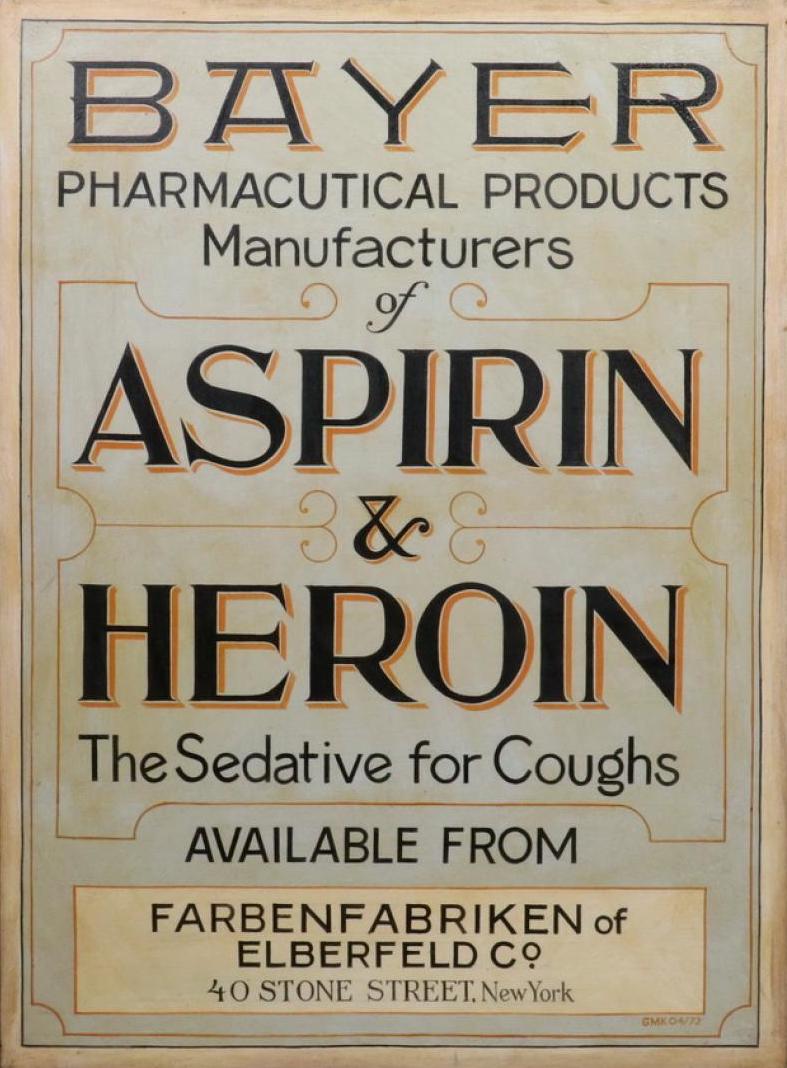 De nombreuses drogues, certaines parmi les plus consommées au monde, proviennent de l’industrie pharmaceutique. L’héroïne a par exemple été au départ produite et commercialisée par Bayer aux États-Unis comme une alternative à la morphine à la fin du XIXe siècle. Elle était vendue librement, préconisée notamment contre la toux, avant d’être interdite au début du XXe siècle après de trop nombreux cas d’addiction graves. Mais, après son interdiction, c’est sur la base de réseaux commerciaux « légaux » que le commerce illégal de l’héroïne a pris racine. Les paysans pauvres du Mexique qui cultivaient les champs de pavot pour le compte de l’industrie pharmaceutique ont été recrutés, souvent de force, par les trafiquants de drogue.
