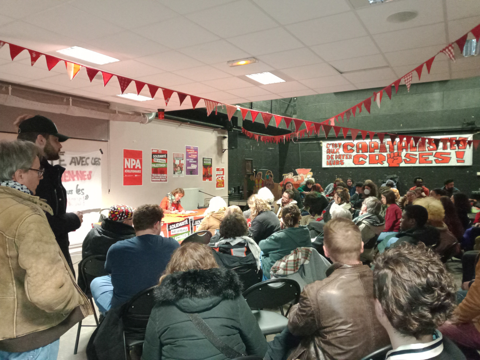 Chanter des chants de la Commune (1871) ou qui donnent envie de manifester le 8 mars, manger un rougail saucisses ou végétarien, discuter de la lutte du peuple kanak contre l’État français, vibrer au récit mis en scène de la migration de Mamadou Samaké, voir une expo sur la grève des sardinières de Douarnenez, réfléchir à la période et aux combats à mener : voilà ce qu’on pouvait faire samedi 1er mars à Caen, à notre fête locale du NPA-R. Cerise sur le gâteau, la salle était bien remplie, puis franchement pleine. Des camarades (merci à celles et ceux venus d’autres villes nous aider !), des amis, mais pas seulement. Des curieux et curieuses, venus par le bouche-à-oreille, ont apprécié l’ambiance, au point pour quelques-uns de finir la soirée avec nous.