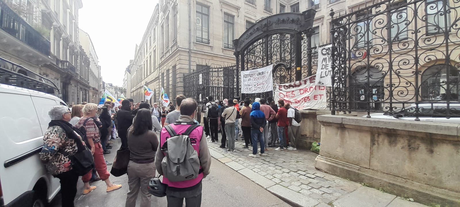 Le refus de reconnaissance du statut de mineur à ces jeunes ne repose sur aucune base objective, uniquement sur la présomption de non validité des documents fournis par leur pays d’origine (pays d’Afrique de l’Ouest en majorité). Ce refus est très souvent rejeté par une décision judiciaire ultérieure comme en témoignent les reconnaissances de minorité validées par la justice depuis le mois de mai pour une dizaine d’entre eux, dont un jeune qui n’a jamais été reconnu mineur en Seine-Maritime et qui l’a été immédiatement dans un autre département. Concrètement, cela signifie donc que l’aide sociale à l’enfance dans le 76 s’arroge le droit de contester, sans aucune justification, la validité des documents d’état civil de ces jeunes, ce qui les prive de la totalité de leurs droits, jusqu’à ce que la justice, des mois plus tard, finisse par leur donner raison contre le département, après de longues et coûteuses procédures. Un exemple : cet été, un mineur du collectif rouennais qui essayait de faire valoir ses droits depuis un an a finalement gagné en appel contre le département de Seine-Maritime. Il a alors été pris en charge par l’ASE pendant… deux semaines puisque le jour de ses 18 ans, il lui a été signifié par SMS qu’il était mis fin à sa prise en charge et qu’il devait immédiatement quitter son foyer. Quant à l’académie de Normandie, elle s’aligne derrière l’ASE et refuse de scolariser les jeunes tant qu’ils ne sont pas reconnus mineurs par celle-ci, en dépit de toutes les conventions internationales signées par la France qui indiquent que le droit à l’école est supérieur à toute autre considération administrative. « La honte à la rectrice » est devenu le slogan le plus repris par les jeunes lors des nombreux rassemblements de colère devant le rectorat de Rouen !