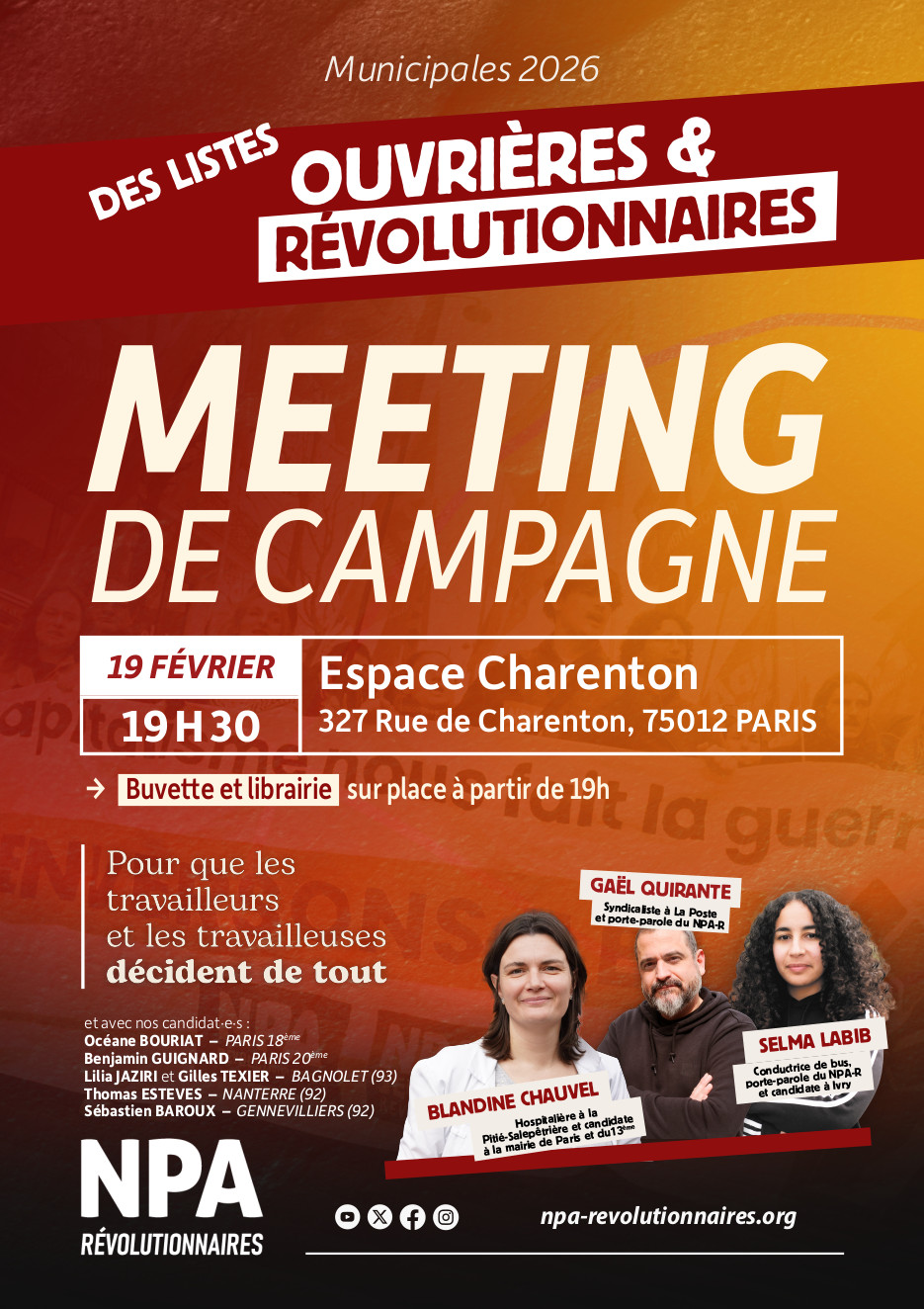 Meeting des listes ouvrières et révolutionnaires à Paris le 19 février