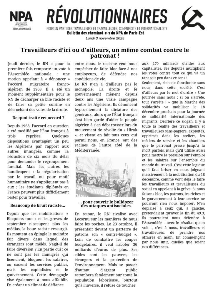 Bulletin des cheminots de Paris Est