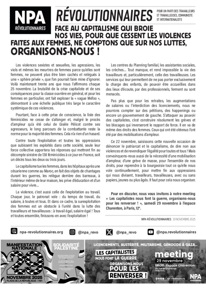 Pour que cessent les violences faites aux femmes, ne comptons que sur nos luttes, organisons-nous !