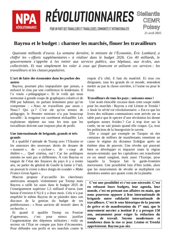 Le journal du NPA Révolutionnaires