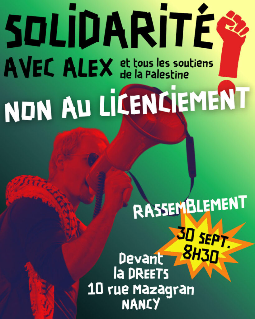 Nancy. Solidarité avec Alex : la répression patronale ne nous empêchera pas de dénoncer le génocide