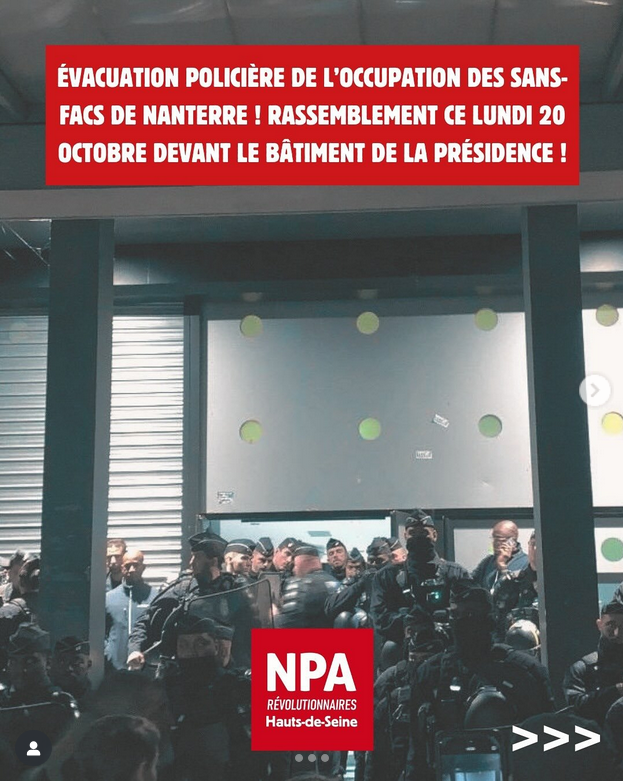 Évacuation policière de l’occupation des sans-facs de Nanterre — Rassemblement le 20 octobre
