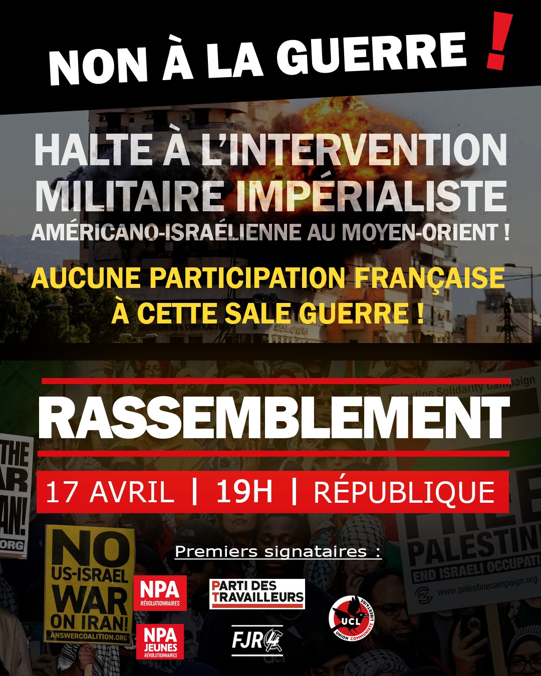 Avec la conviction que ce rassemblement ne pourra que s’élargir aux organisations opposées à la guerre, nous appelons travailleurs et jeunes à y participer pour affirmer :