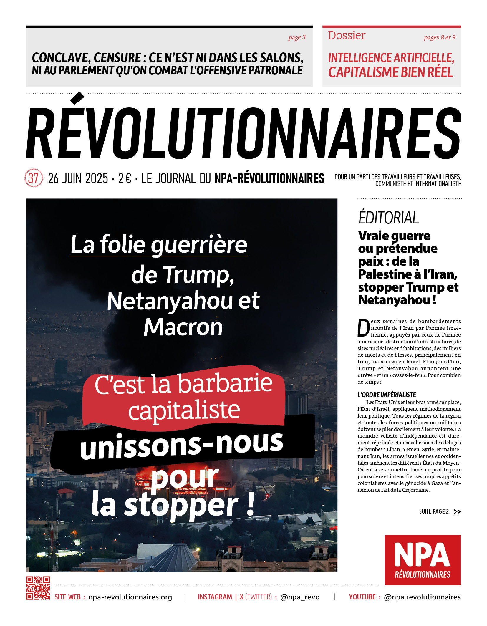- Éditorial : Vraie guerre ou prétendue paix : de la Palestine à l’Iran, stopper Trump et Netanyahou !