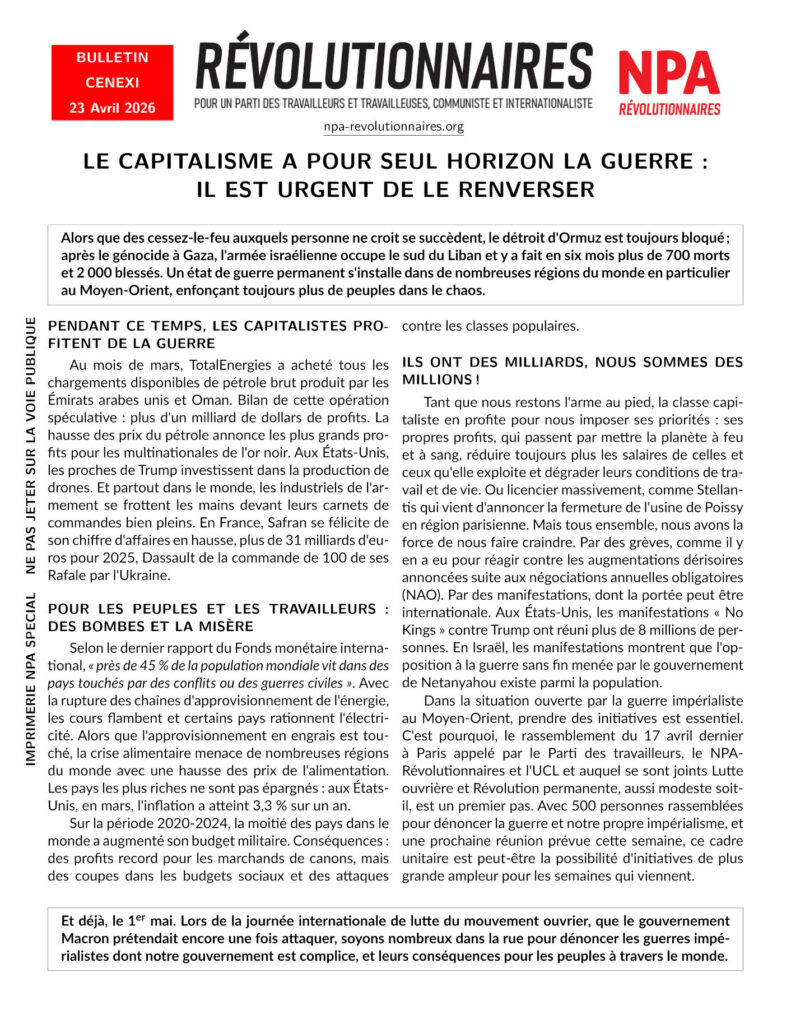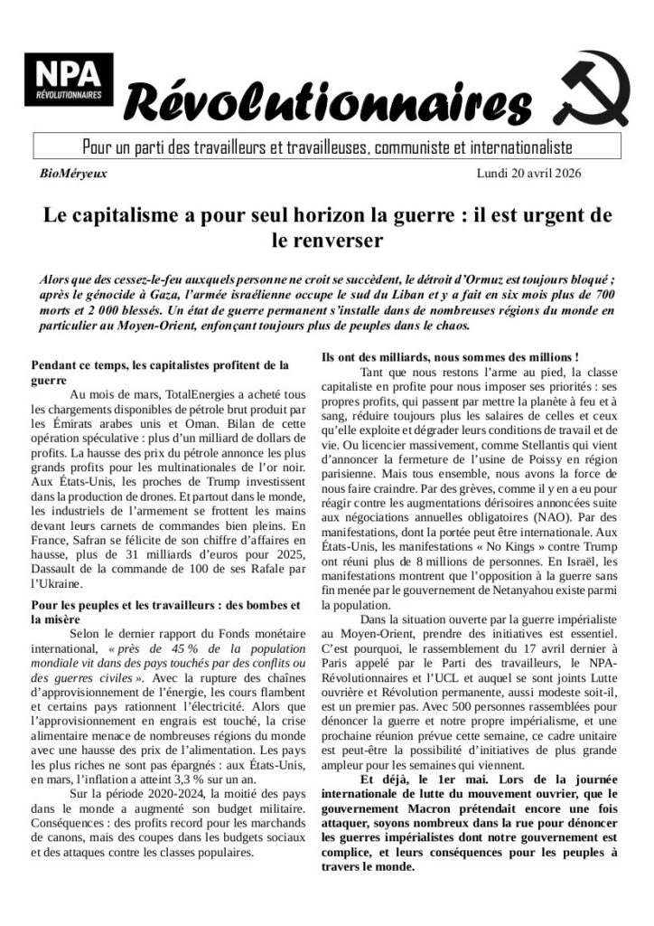 Les bulletins d’entreprise et tracts du NPA-Révolutionnaires