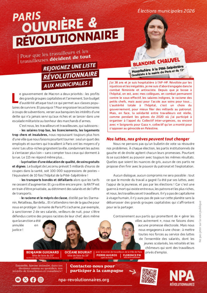 Municipales 2026 – tract Paris