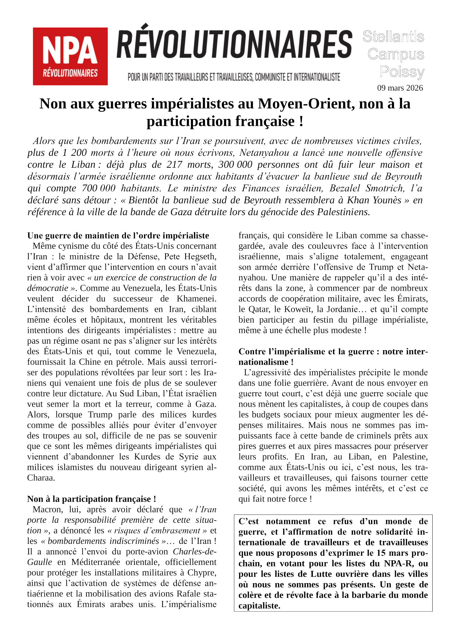 Voir en PDF le bulletin du 9 mars 2026