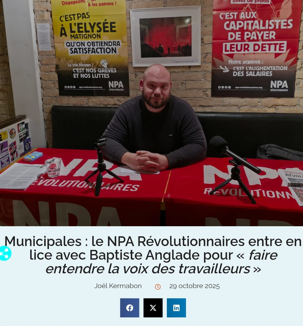 Municipales : le NPA Révolutionnaires entre en lice avec Baptiste Anglade pour « faire entendre la voix des travailleurs »